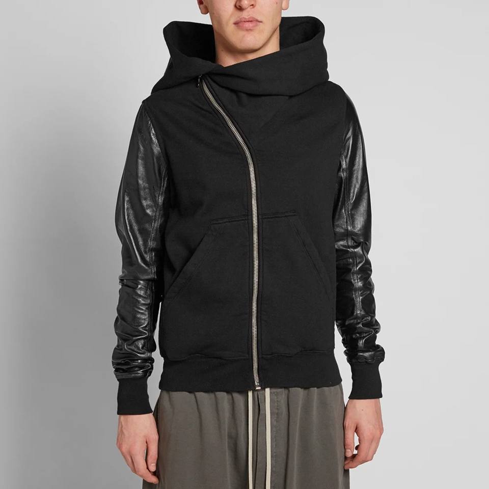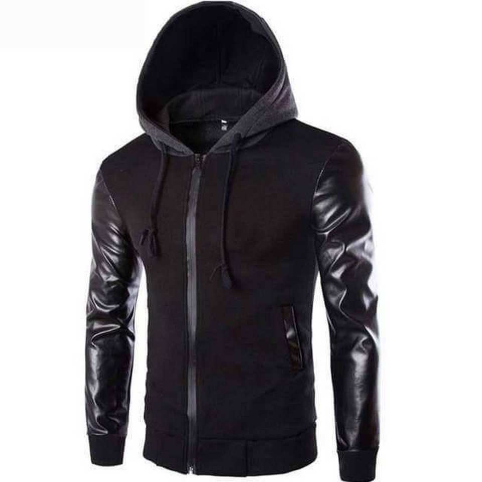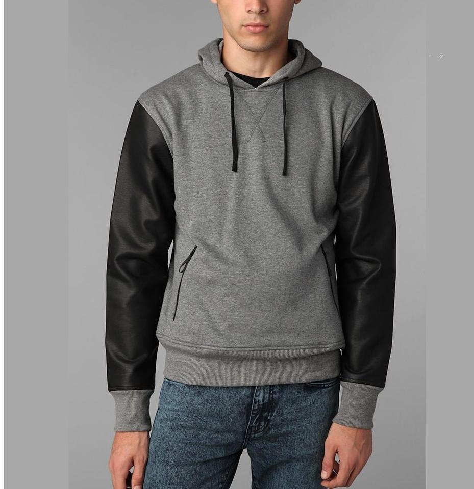 Keywords:Men's Leather Sleeve Hoodie Customized