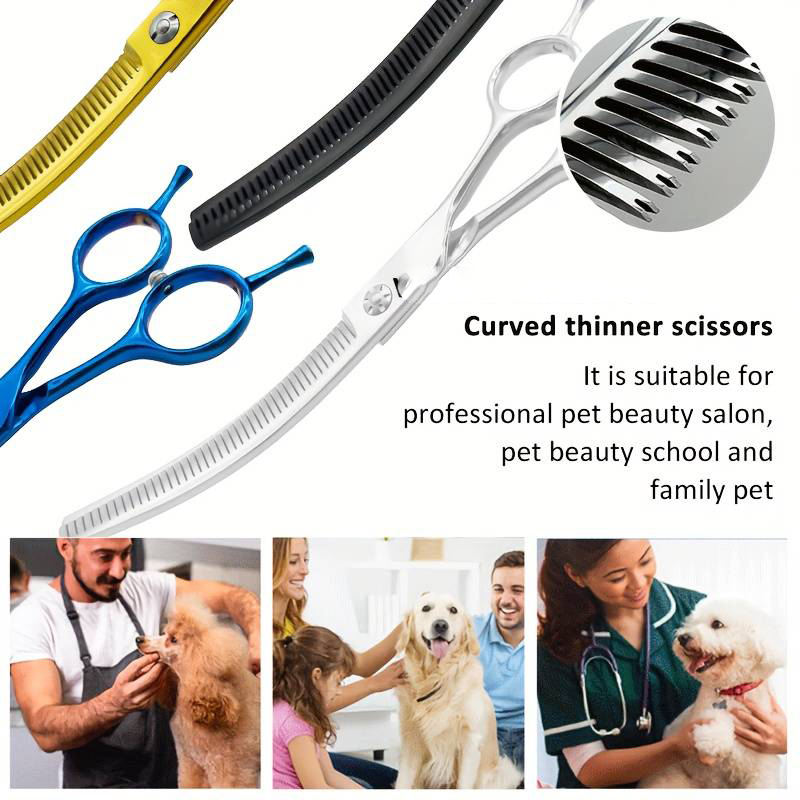 Ciseaux amincissants incurvés pour chiens Ciseaux de toilettage pour animaux de compagnie en acier inoxydable Ciseaux de coupe de cheveux
