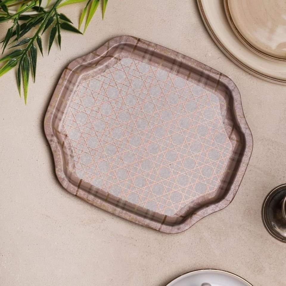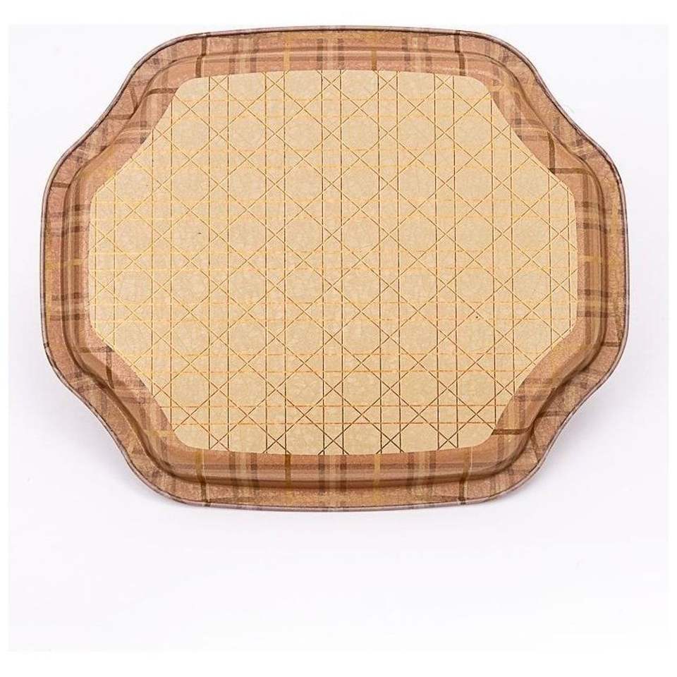 Plateau de service en bois à bord ondulé incurvé 160x190mm rose élégant caractéristiques décoratives rotin nacre perle pour servir du café