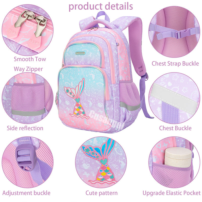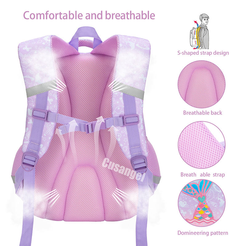 Sac à dos scolaire pour filles Cusangel de haute qualité 3 en 1, queue de sirène, polyester, imperméable, avec sac à lunch et trousse à crayons