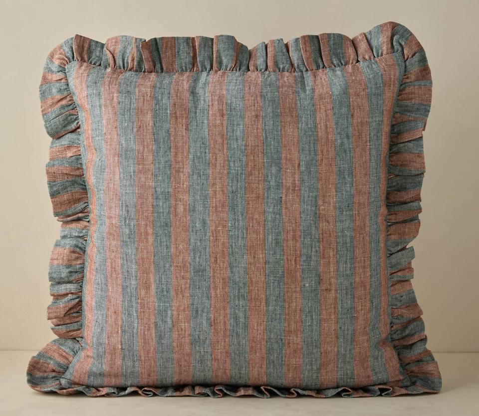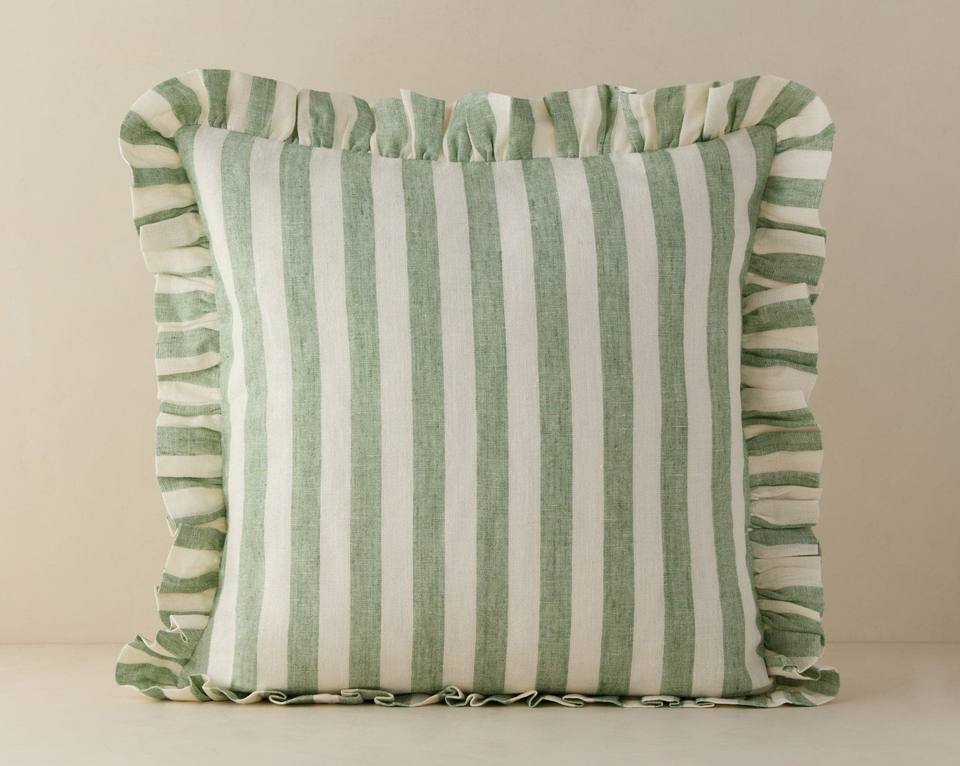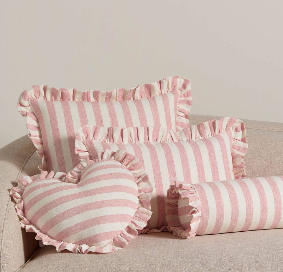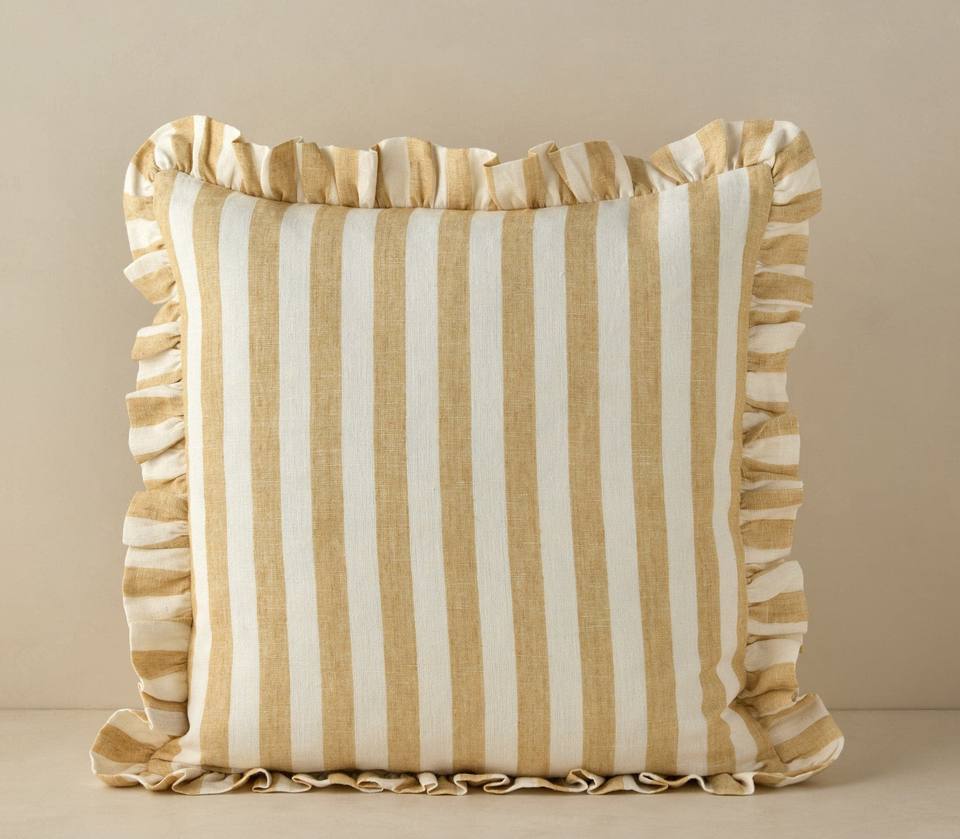 Housses de coussin en coton tissé 100% rayées à volants, décoratives style ferme, douces avec bordure à volants, taies d'oreiller en coton