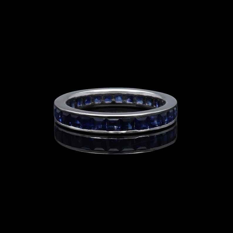 Mot-clé:Bague alliance sertie de saphirs bleus taille coussin, pierres précieuses élégantes