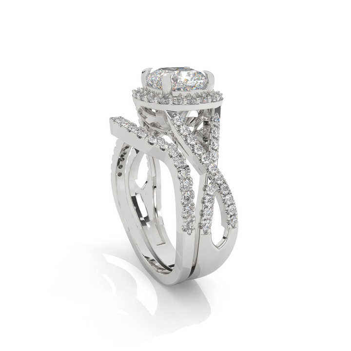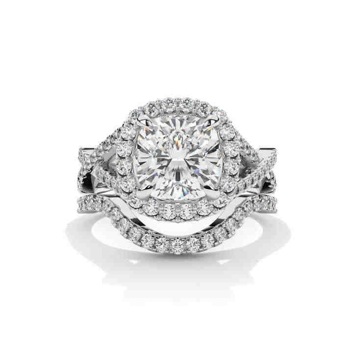 Ensemble de bagues de mariage en diamant de laboratoire taille coussin avec halo, bague de fiançailles à tige fendue plaquée or blanc 18 carats, moissanite, bijoux personnalisés en gros