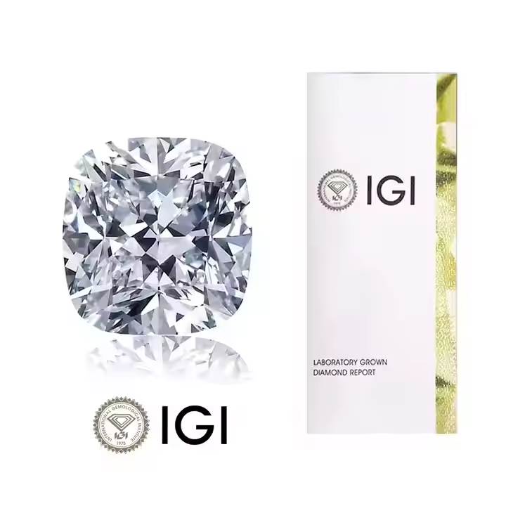 Coussin coupe laboratoire cultivé diamant IGI certifié VVS2 clarté E couleur CVD pierre Ruha R001 pour des Concepts de bijoux de luxe audacieux minimalistes