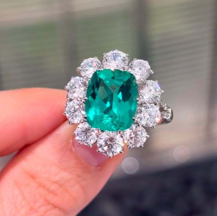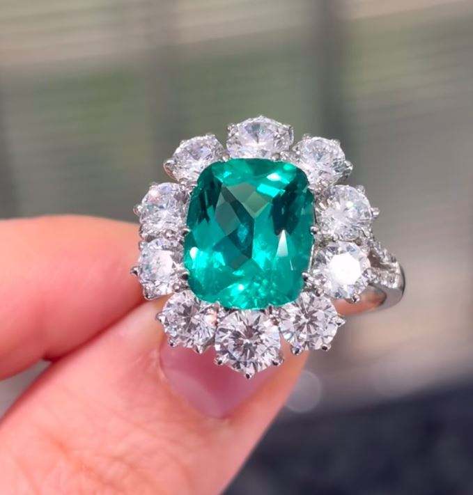 Bague en argent sterling 925 avec émeraude de laboratoire taille coussin et halo de zircone cubique, style vintage, pierre précieuse verte