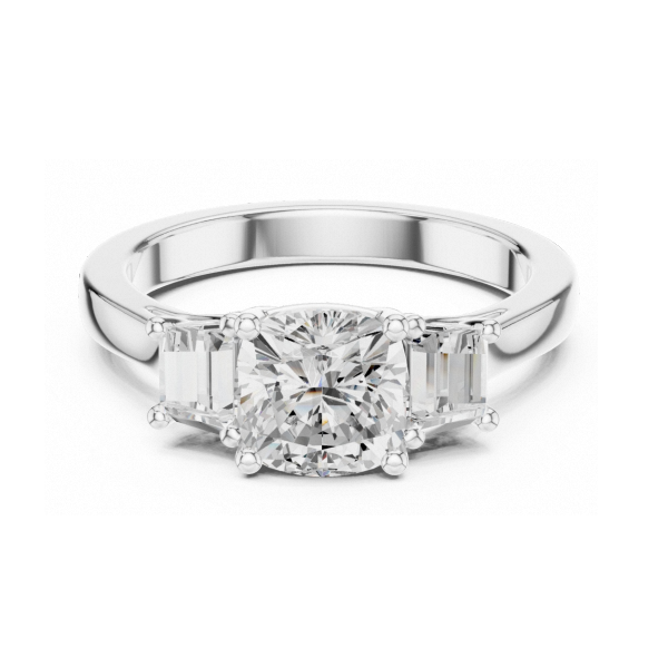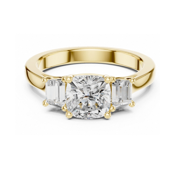 Bague de fiançailles à trois pierres taille coussin en or jaune avec pierres latérales de couleur fantaisie naturelle certifiées IGI – Cadeau de luxe pour l'avenir