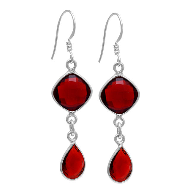 Coussin Poire Briolette Coupe Rouge Grenat Argent Sterling Pierres Précieuses Boucles D'oreilles Bijoux Poire, Princesse Forme Boucle D'oreille De Mode