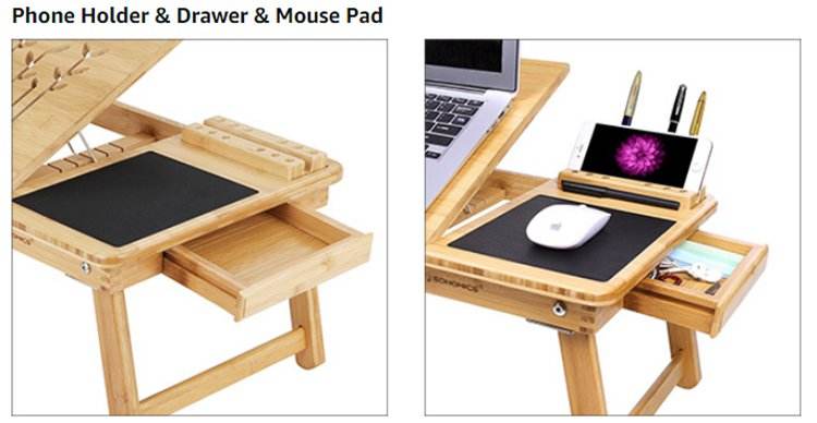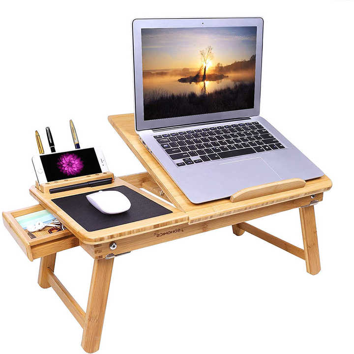 Coussin En Bambou Bureau Avec Téléphone Support D'ordinateur Portable Debout Table Prix Multifonction Table D'ordinateur Portable