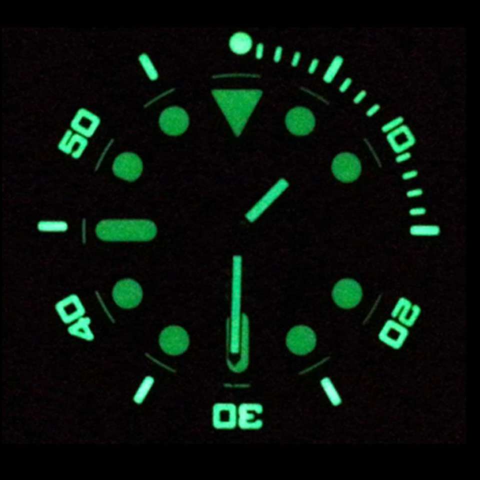 Date automatique, Jour/date, Plongeur, Réserve de marche, Résistant à l'eau, Imperméable, Lumineux, Lumineux Mains
