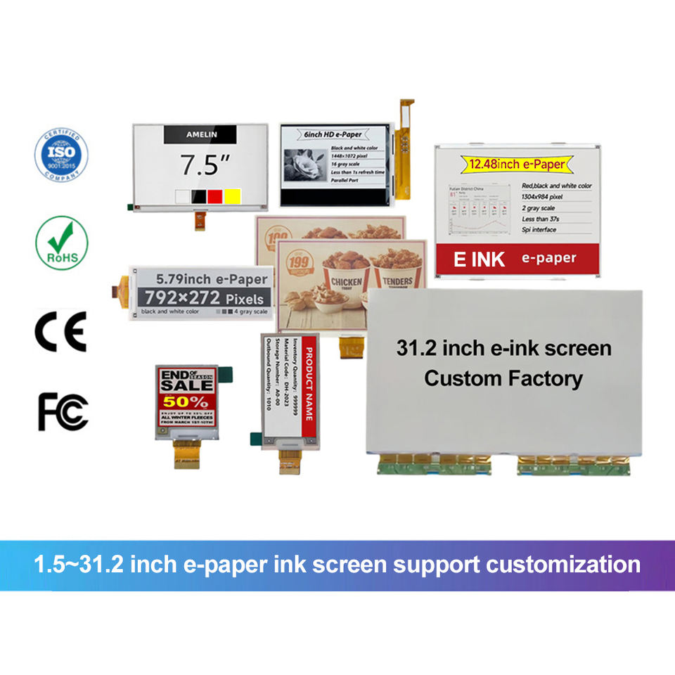 Écran E-Ink personnalisé de 1,54 2,13 2,66 2,9 3,7 4,2 5,83 7,5 10,2 13,3 28,2 31,2 pouces, écran couleur E-Paper, écran E-Ink, écran Epd Epaper