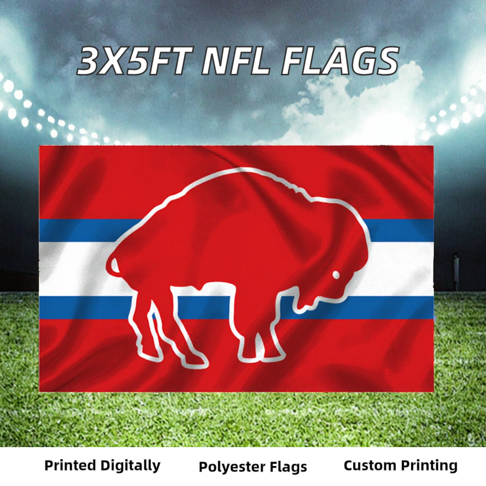 Wanxing Drapeau NFL personnalisé 1 couche, impression double face 3x5 ft pour Buffalo Bills, usage assurance automobile