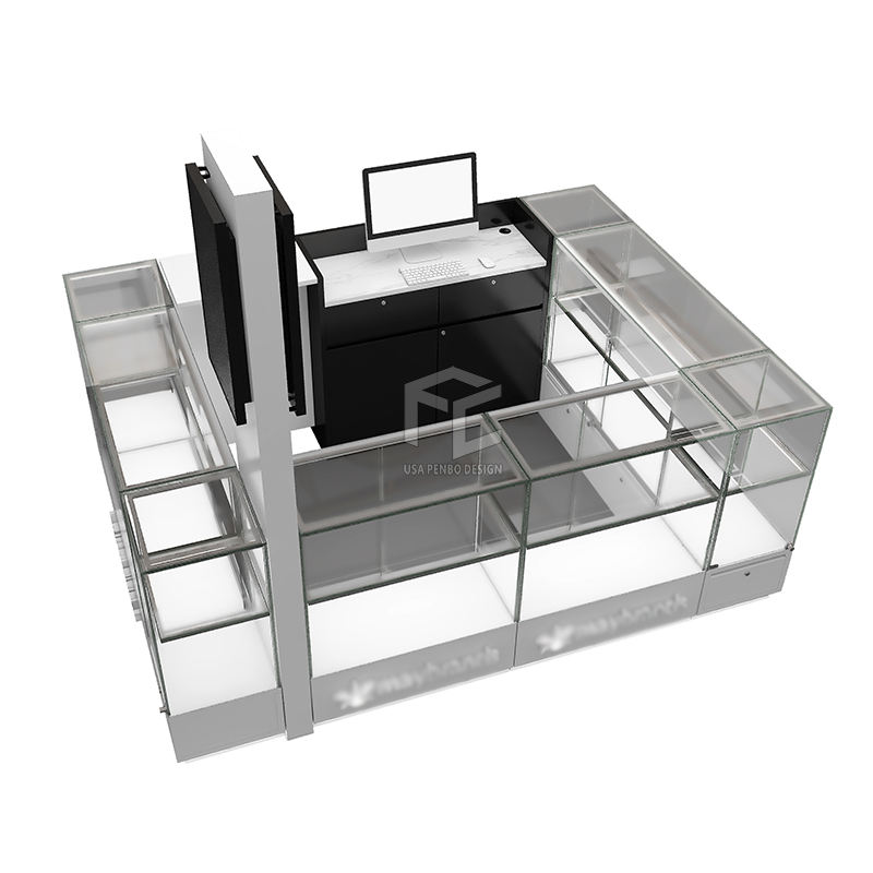 Vitrine à bijoux en verre pare-balles sur mesure de 10 pieds pour centre commercial, kiosque à bijoux, comprend un présentoir à montres, marque PENBO, ODM, OEM