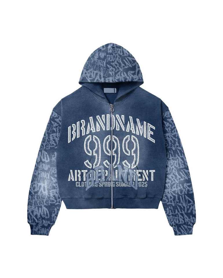 Survêtement d'hiver personnalisé 100% coton délavé à l'acide imprimé numérique pour hommes ensemble de jogging surdimensionné avec short évasé veste à capuche