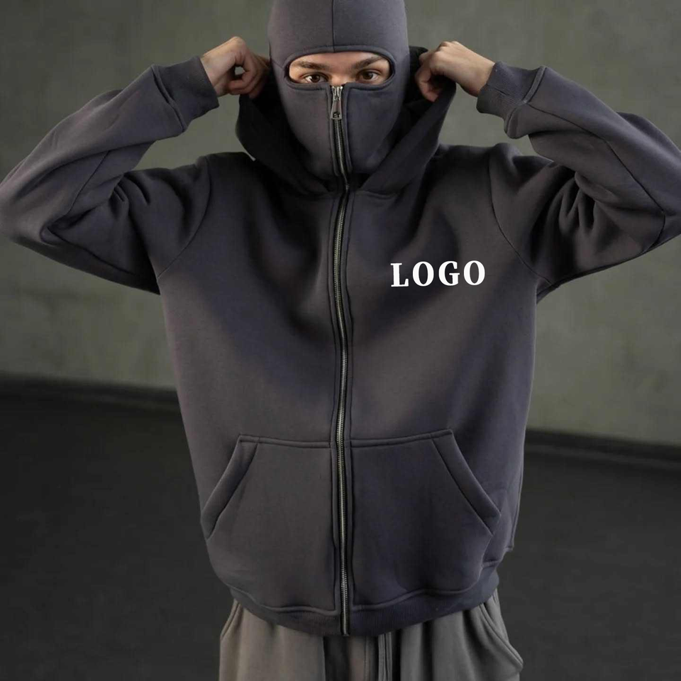 Sweat à capuche balaclava boxy en coton 100% personnalisé, 450 g/m², en tissu éponge français, masque pour homme, surdimensionné, uni, épais, broderie 3D à capuche