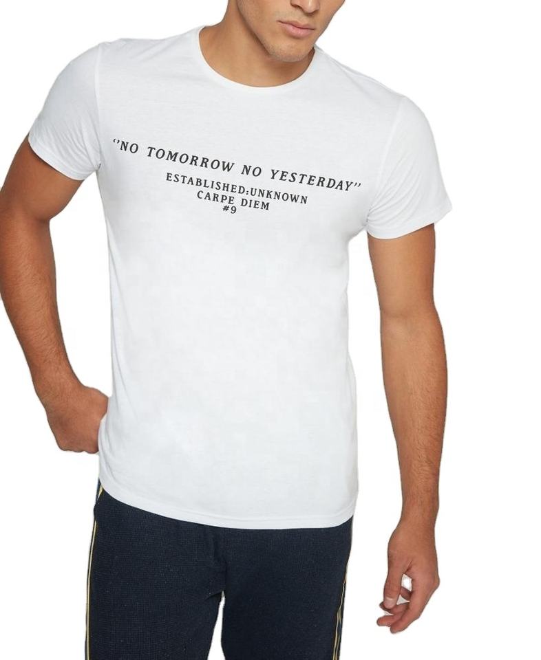 Custom 100% Cotton Men's T-Shirts with Unique Neck Line Label & Screen Printing Letter Pattern