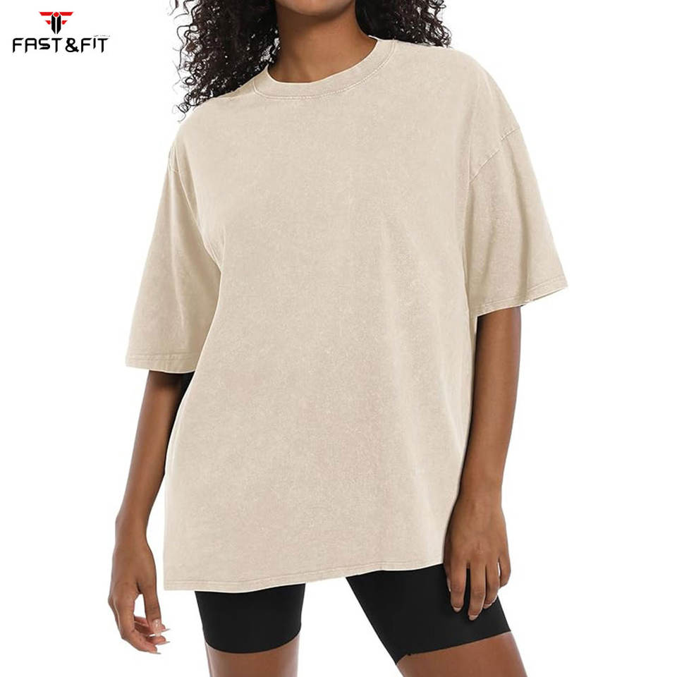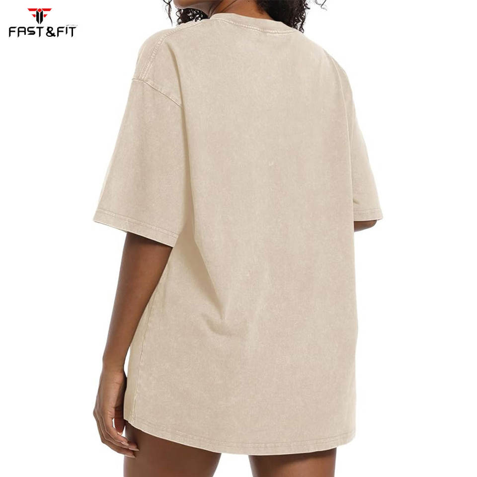 T-shirts surdimensionnés personnalisés 100 % coton pour femmes, motif plumes d'été, 210 g/m², design tricoté uni décontracté, impression par transfert thermique/sérigraphie