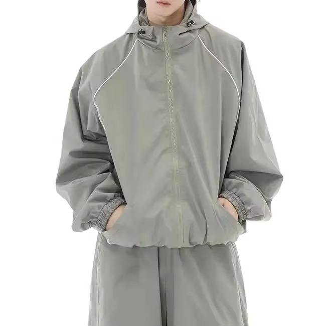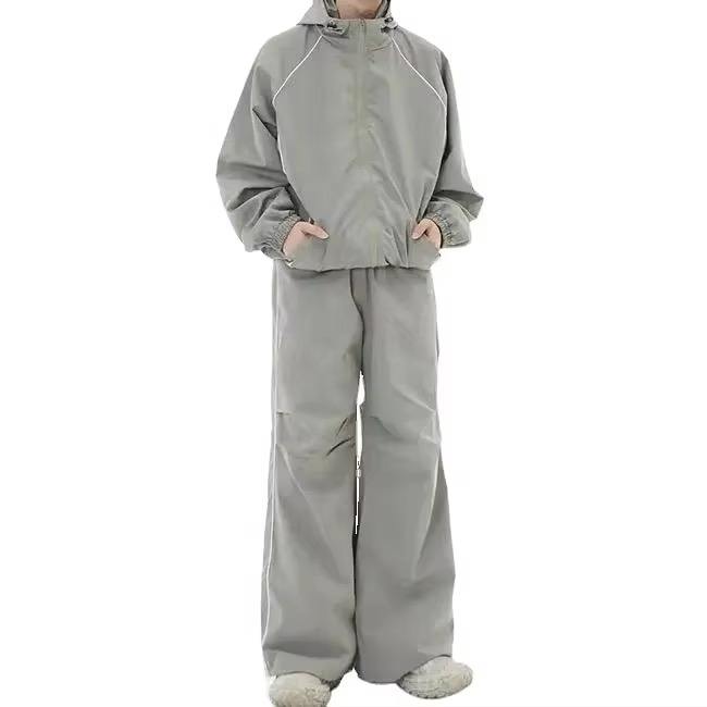 Survêtement d'hiver personnalisé 100% coton, coupe-vent à capuche, ensemble jogging vintage deux pièces pour hommes et femmes, noir avec cordon de serrage