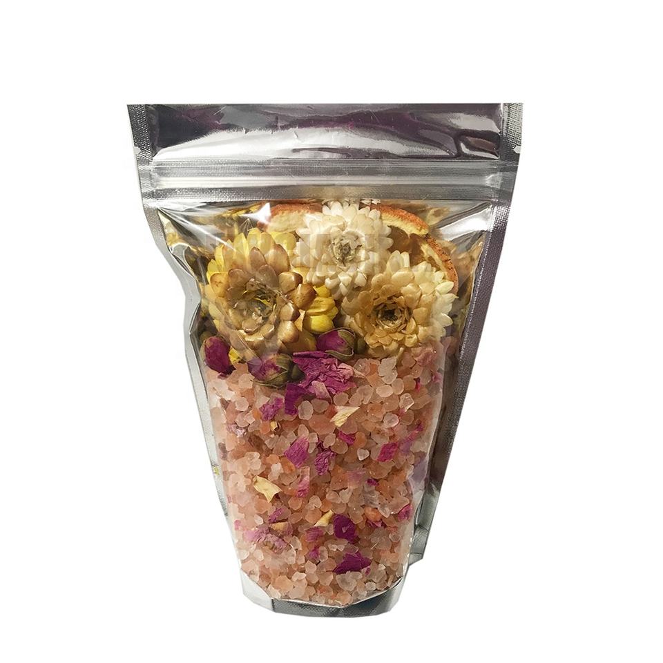 Sels d'Epsom personnalisés 100% naturels à étiquette privée Bain relaxant Parfumé Luxe Cristal de sel de l'Himalaya dans un sac zippé