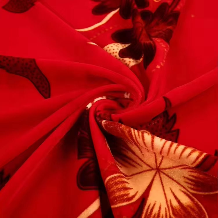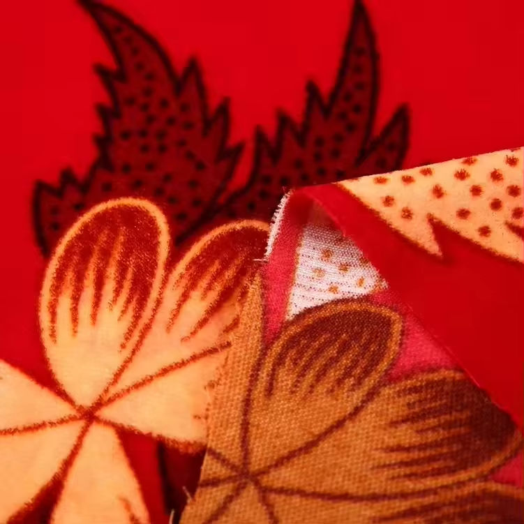 Personnalisé 100% Polyester Pas Cher Rouge Style Africain Velours Tissu Tissé Fleur Imprimé 5000 Tissu Velours pour La Maison Déco ou Vêtements