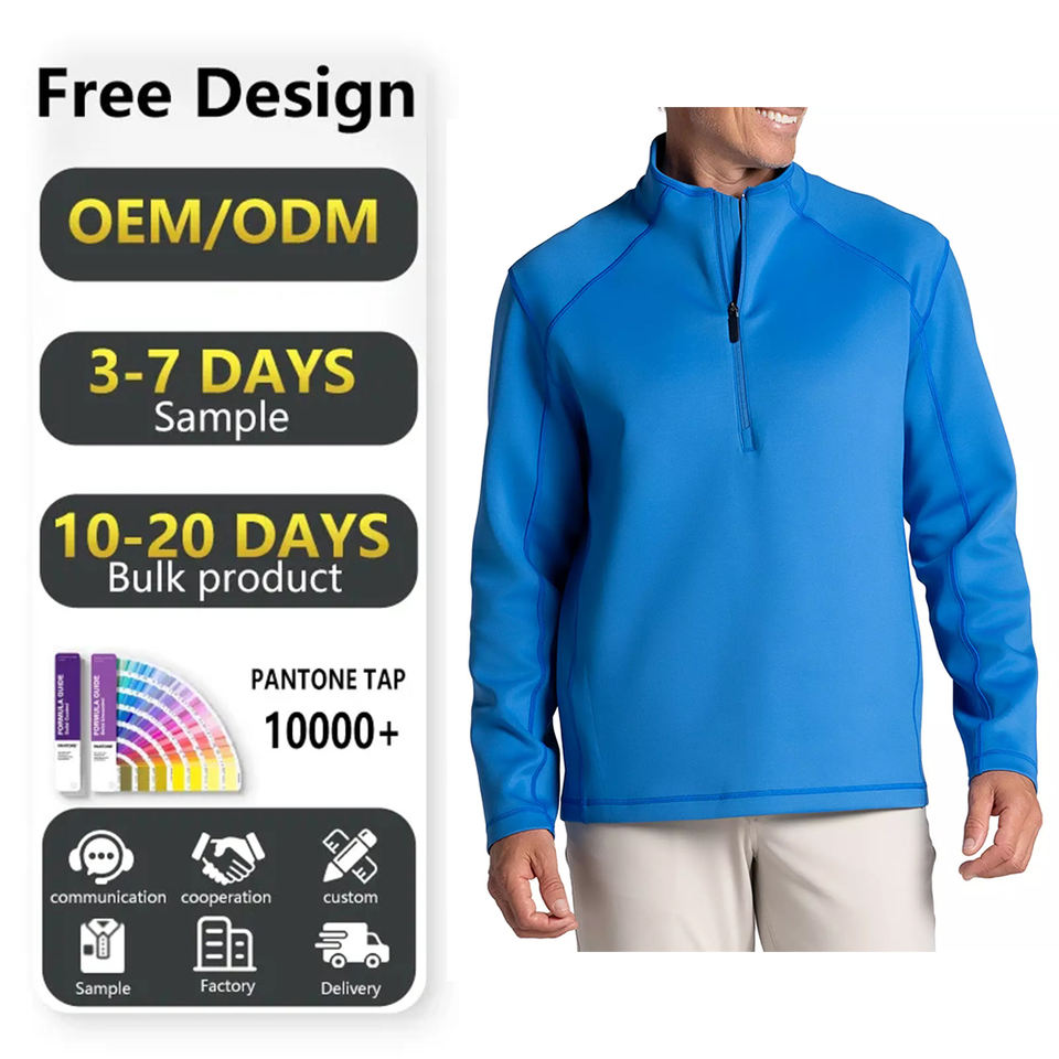 Pull quart de fermeture éclair pour hommes en coton et polyester personnalisé UPF 50 + Dry Fit sweat-shirt athlétique léger à manches longues imprimé d'automne