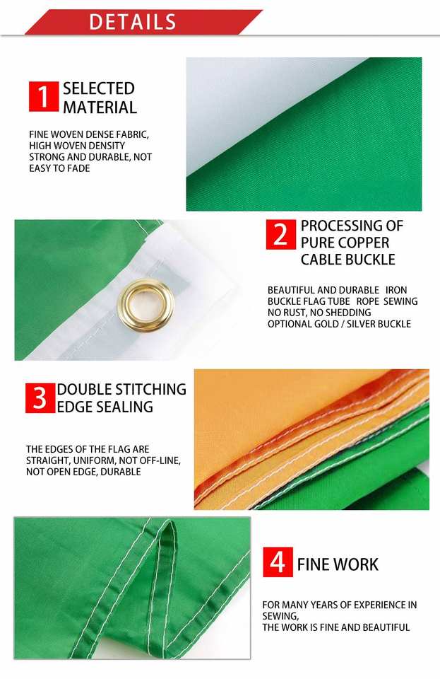 Impression personnalisée 100% Polyester 3X5ft drapeau de pays d'Irlande du Nord Orange vert blanc drapeau national irlandais