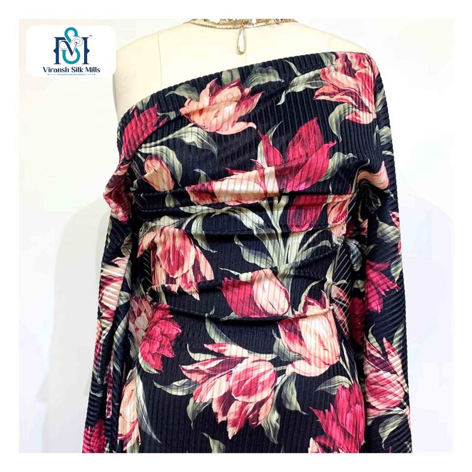 Tissu côtelé en polyester 100% personnalisé 200g Conception extensible tricotée avec motif pour robes à manches avec échantillon gratuit