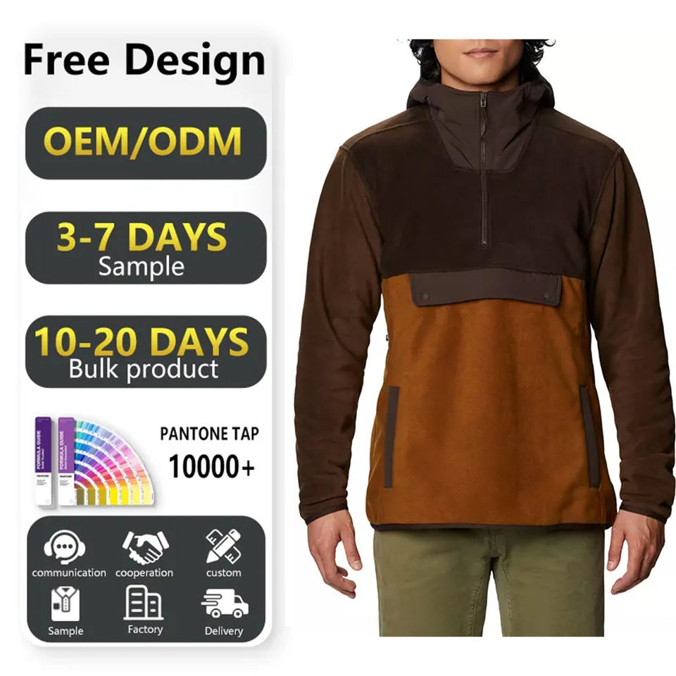 Sweat-shirt de randonnée en polaire tricoté patchwork à col zippé 1/4 personnalisé pour homme, avec blocs de couleur et capuche