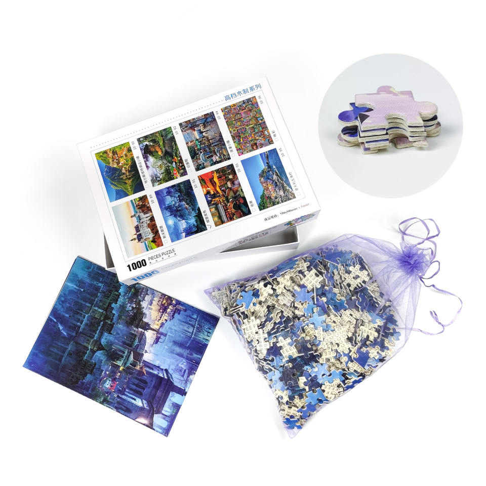 Puzzle en bois, papier et plastique EVA personnalisé de 1000 pièces, jouet éducatif, certifié EN71, échantillon gratuit, logo imprimé, boîte cadeau