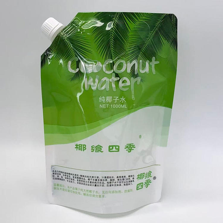 Fond d'emballage en plastique PE personnalisé de 1000ml sac transparent sac portable anti-fuite pochette debout avec bec verseur pour eau de coco
