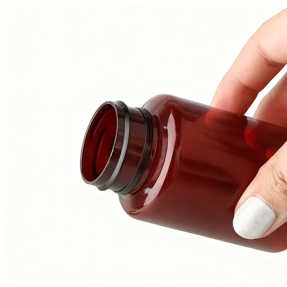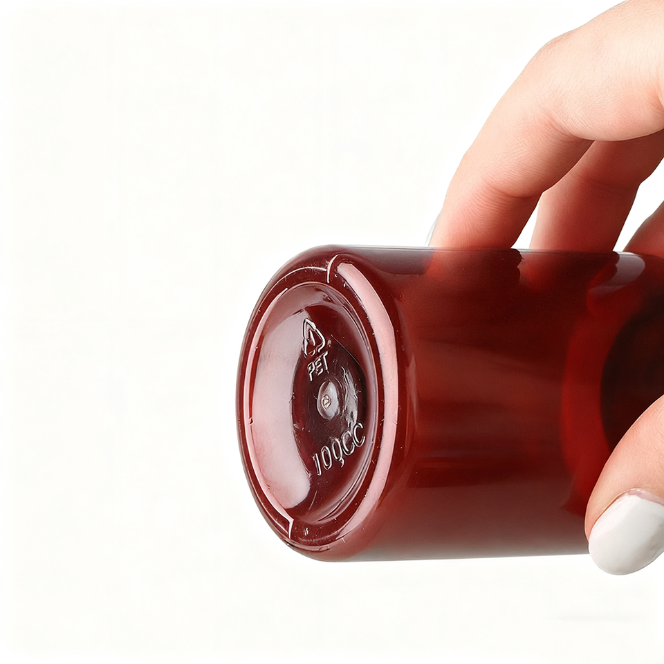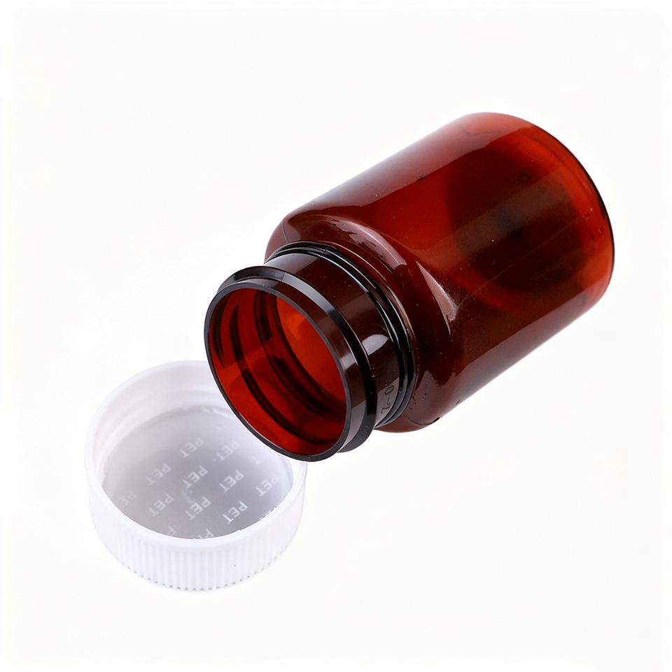 Personnalisé 100ml 150ml 250ml Bouteilles de comprimés de médecine de capsule en plastique recyclable Bouteilles de pilules ambre de qualité alimentaire pour soda
