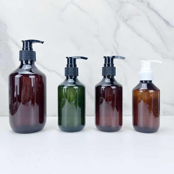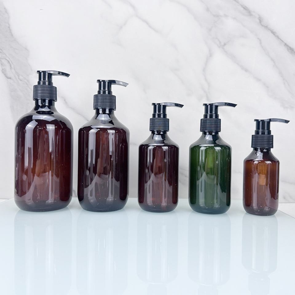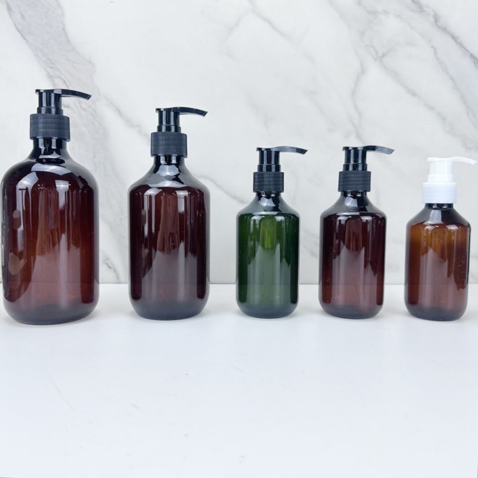 Bouteille de shampooing en plastique PET transparente ambrée verte personnalisée de 100 ml, 200 ml, 300 ml, 400 ml, 500 ml, bouteille d'huile capillaire avec pompe à lotion