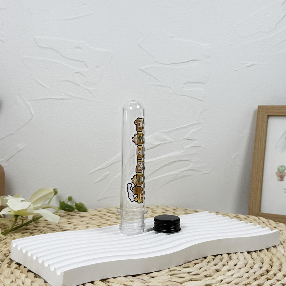Récipients alimentaires de stockage en plastique transparent de 110ml personnalisés emballage de bouteille de tube à essai en PET avec bouchons à vis pour bonbons