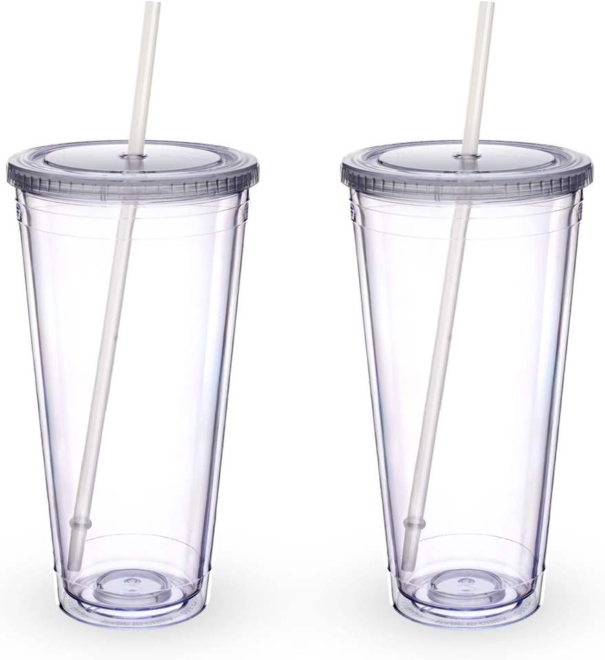 Bouteille d'eau de voyage réutilisable personnalisée de 12 oz, 16 oz, 22 oz, gobelets à double paroi, gobelets en plastique transparent pour jus avec paille et couvercle
