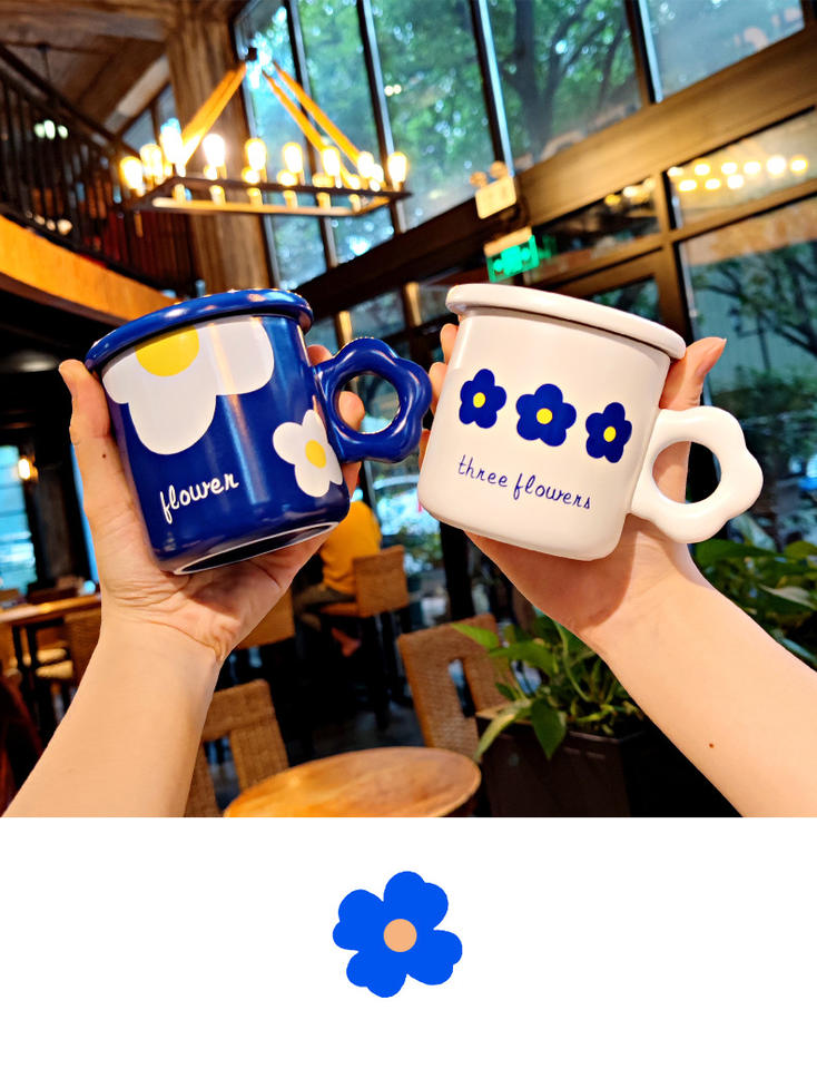 Tasse de camping à bord bleu classique de 12oz personnalisée tasse à café en émail au design unique lavable au lave-vaisselle tasses de voiture mignonne idée cadeau de remise des diplômes