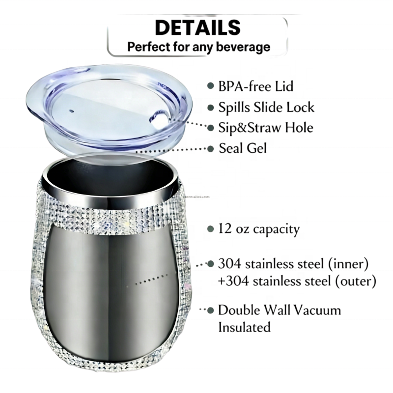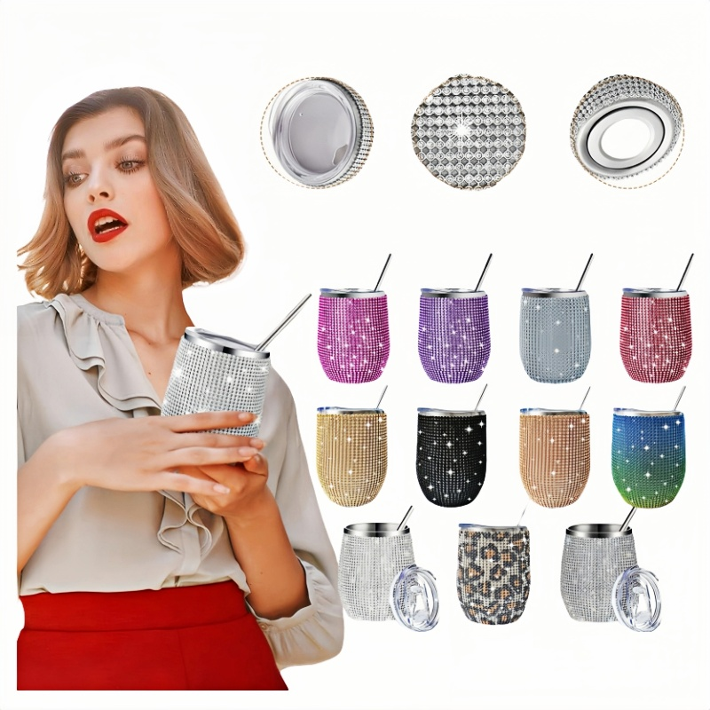 Description:Tasses à paille en acier inoxydable en forme d'œuf incrustées de strass