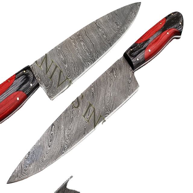 Ensemble de couperet de cuisine en acier inoxydable damas personnalisé de 13 pouces Couteaux de cuisine de chef japonais en bois coloré en carbone durable
