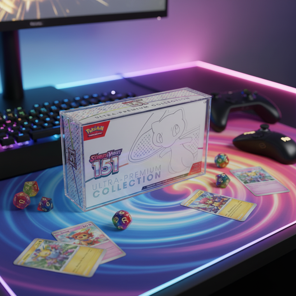Vitrine en acrylique personnalisée 151 Ultra Premium Collection UPC avec couvercle magnétique Étui de protection UV pour boîte Pokemon TCG Booster