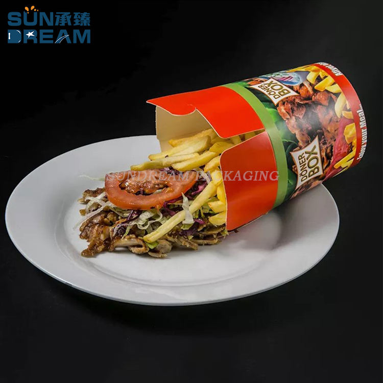 Boîte d'emballage personnalisée pour Kebab Doner 16oz, en papier kraft jetable, avec fond, pour nouilles chinoises, avec logo imprimé et spécifications en aluminium