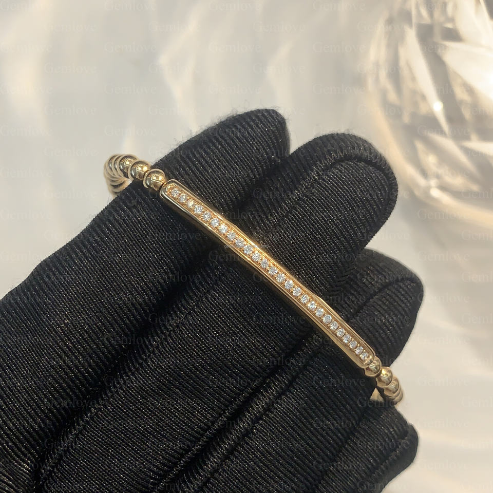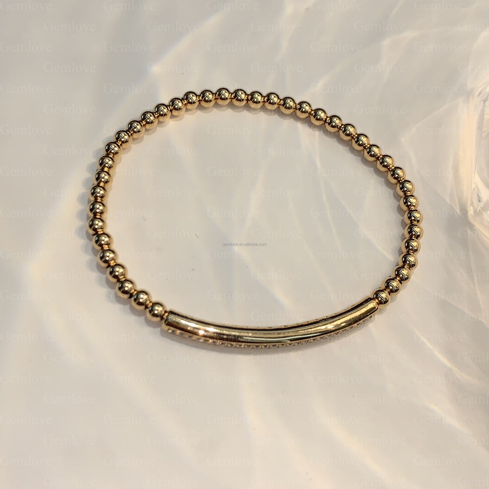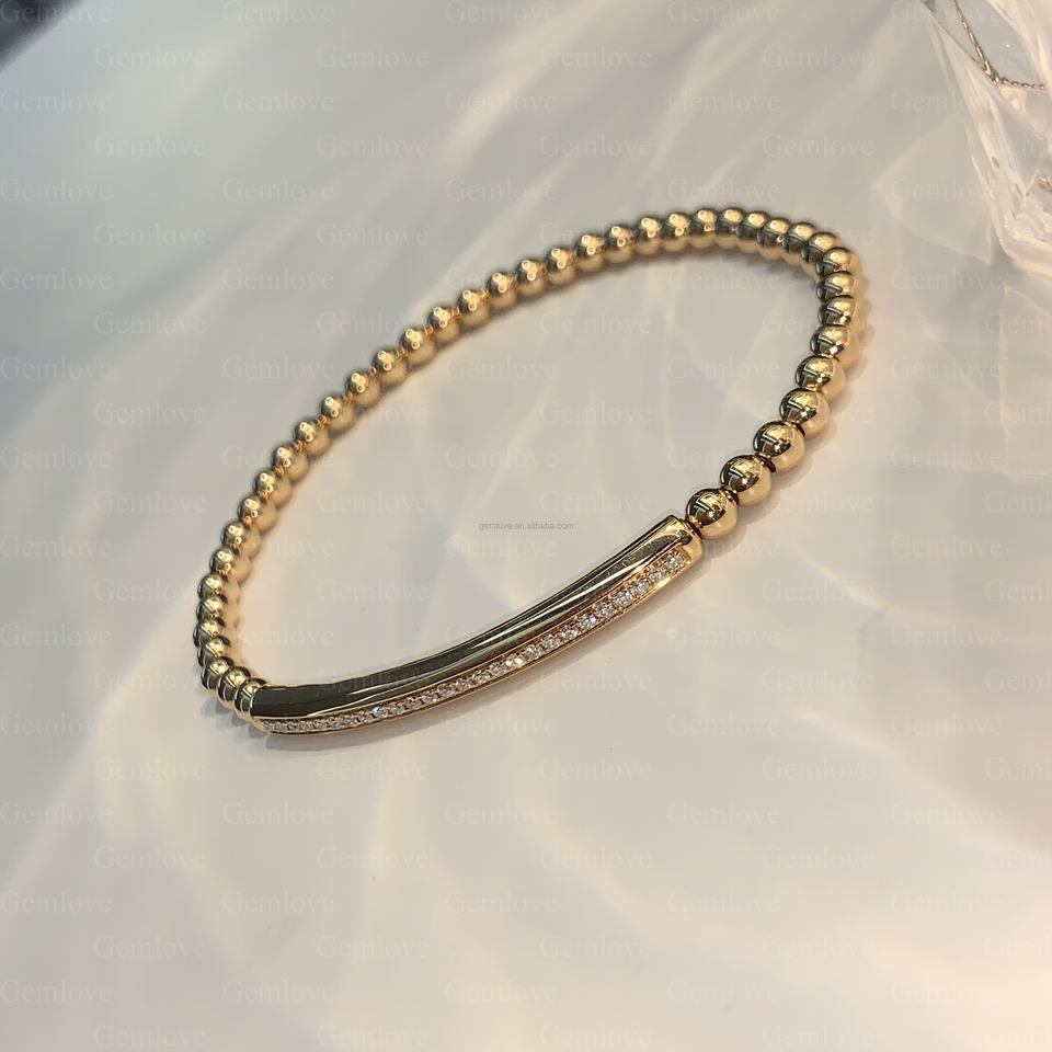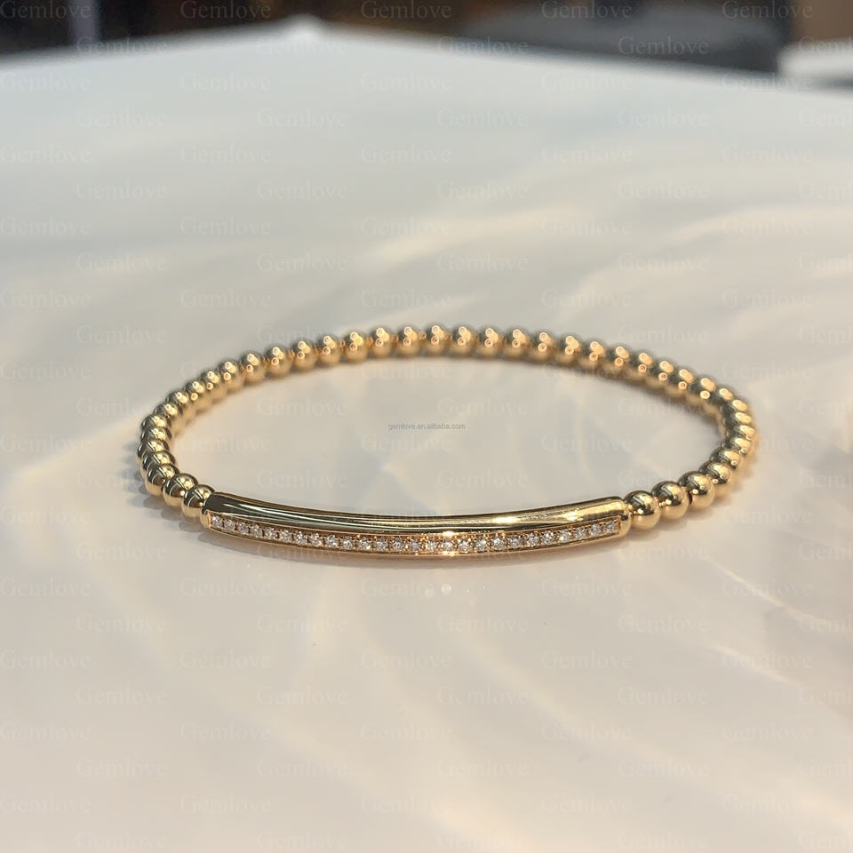 Chaîne de perles de motard personnalisée en or 18 carats 7.87g-Bracelet extensible de 18cm pour tenues à la mode