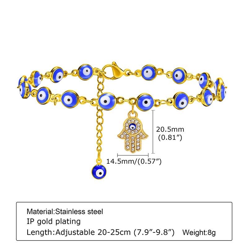 Chaînes personnalisées plaquées or 18 carats, bijoux en or avec yeux bleus, bracelet 24 carats, bijoux de cheville en acier inoxydable, bracelets de cheville pour femmes