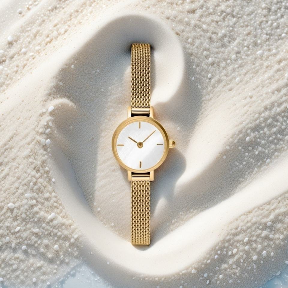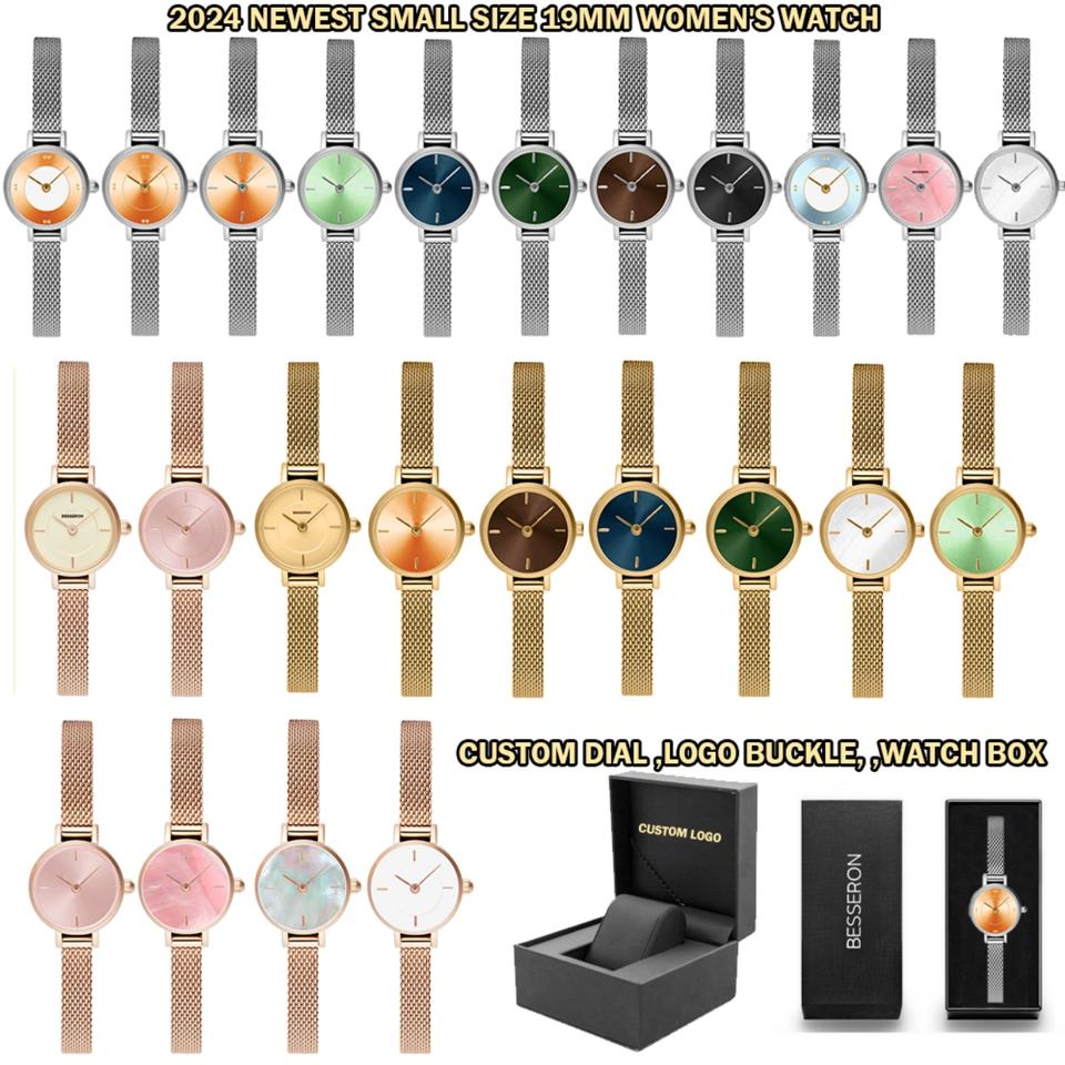 Custom 19mm Quartz Ladies Watch Gold Stainless Steel Mesh White Pearl Dial Business Style Crystal Window Material Pointer