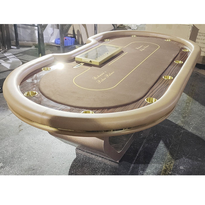Custom 2.4m Poker Table Luxury Wood Casino Games Texas Blackjack Gambling Led Light Poker Tables