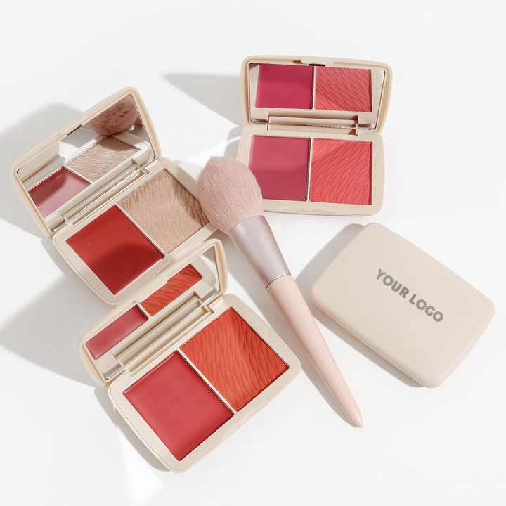 Palette personnalisée de 2 couleurs de fard à joues et de surbrillance, longue durée, rouge, Pigment élevé, étiquette privée, Blush 2 tons