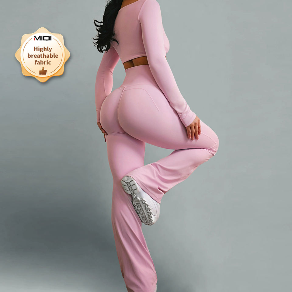 Ensembles d'Entraînement 2 Pièces Personnalisés Taille Haute Évasés pour Femmes: Vêtements de Sport Pilates Yoga Fitness