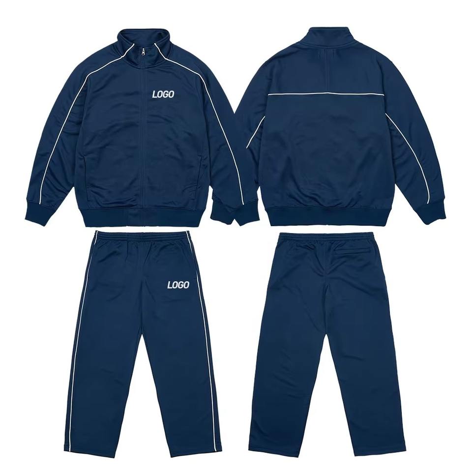 Survêtement d'hiver en coton uni à capuche 2 pièces avec coupe-vent et pantalon de survêtement pour hommes