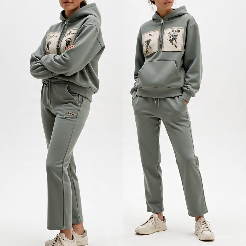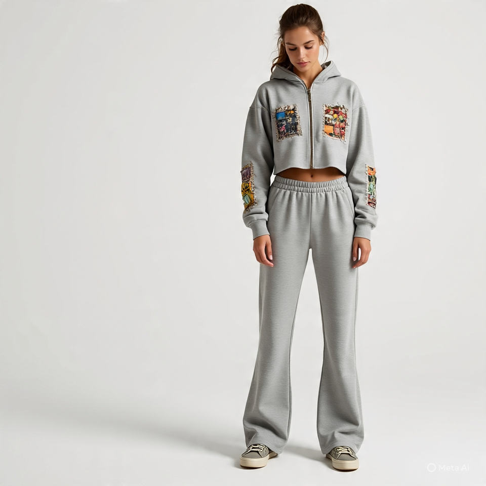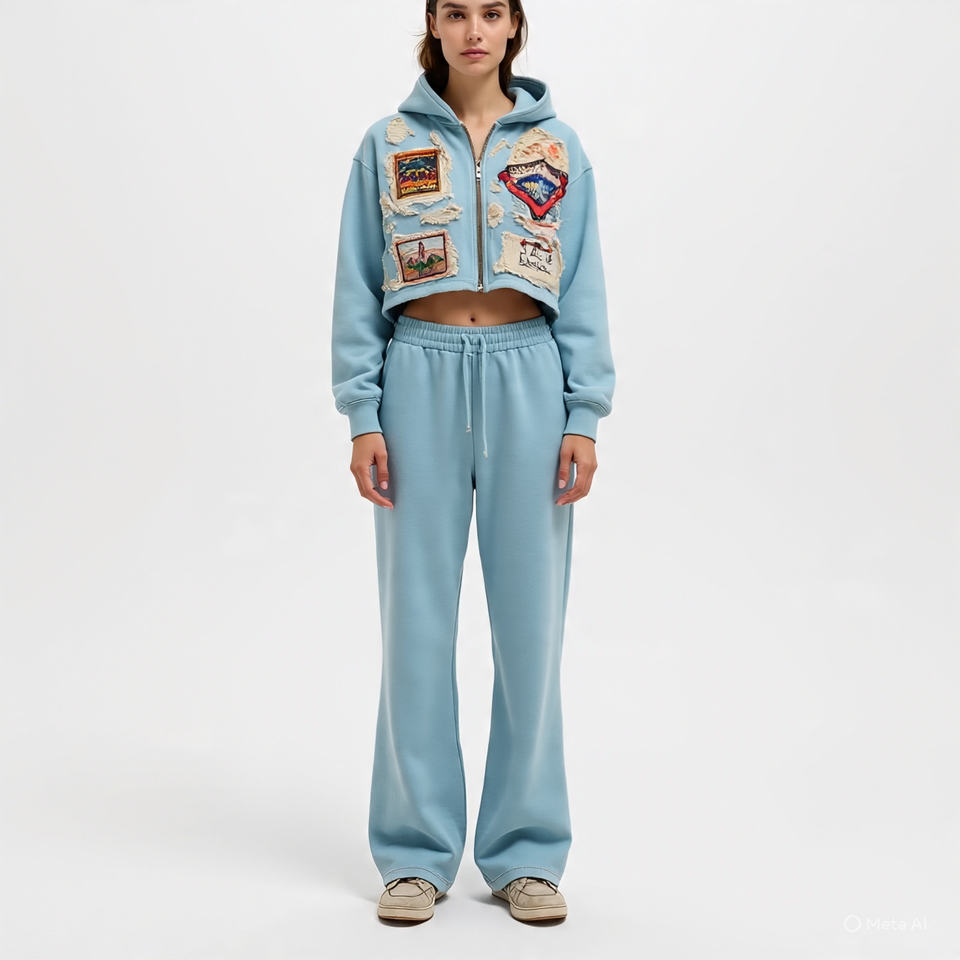 Ensemble 2 pièces personnalisé sweat-shirt pour femme avec patch de broderie vieilli sweat-shirt à capuche et pantalon de survêtement zippés ensemble survêtement pour femmes