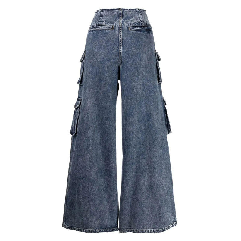Personnalisé 2025 Nouveau Designer Jeans Taille Moyenne Denim Bleu Délavé Multi Poches Baggy Cargo Jeans pour Hommes Jambes Larges Cargo Bleu Jeans