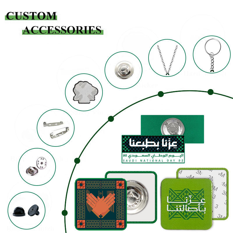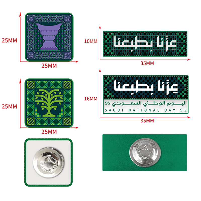Personnalisé Fête Nationale Saoudienne 2025 : 95 Pins de revers, Autocollants pour téléphone, Porte-clés, Pendentifs de collier, Symbole des six valeurs fondamentales, Souvenir culturel
