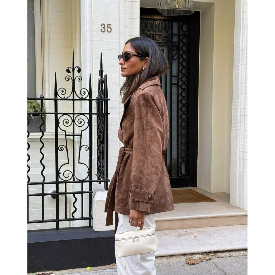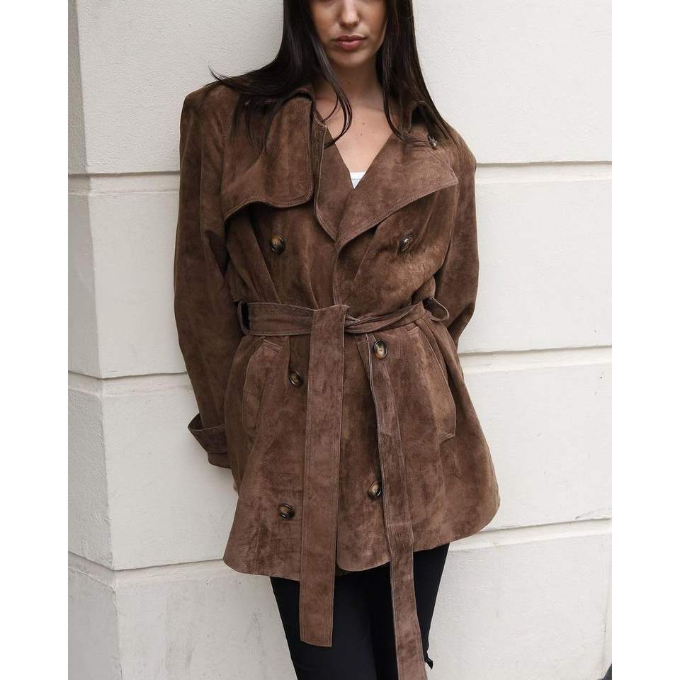 Manteau d'hiver élégant pour femme en faux daim marron 2026 avec ceinture, manches longues, tissé, chaud et durable