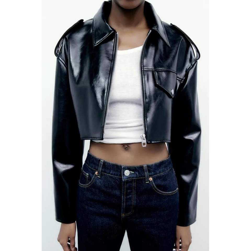 Blouson Moto Femme en Similicuir Court Personnalisé 2026 avec Fermeture Éclair, Manches Longues et Col Rabattu – Style Urbain Automne